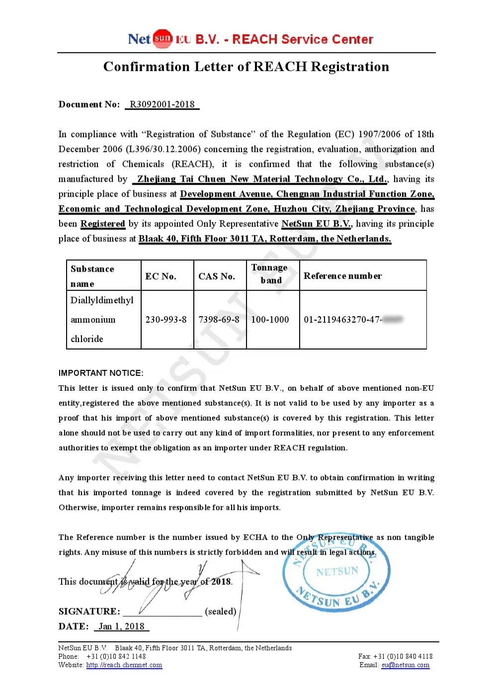 In December 2015, it passed the REACH certification of the European Union In 2015, the company has declared 16 utility model invention patents and obtained 9 certificates, and passed the preliminary examination of 7 invention patents. |
